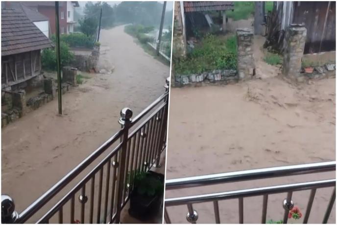 Kako je se vidi na video snimku na Instagram stranici 192_rs, cela ulica je poplavljena i voda velikom brzinom teče niz ulicu.
