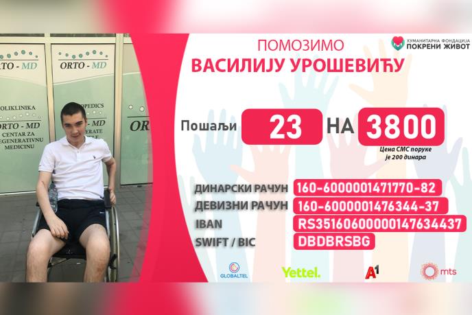 Vasiliju su pružili šansu za ponovni korak lekari na Tajlandu transplantacijom matičnim ćelijama. Vasilije je do sada imao čak 10 operacija, intenzivnu rehabilitaciju i svakim danom je sve bliže i bliže da ustane na svoje noge.