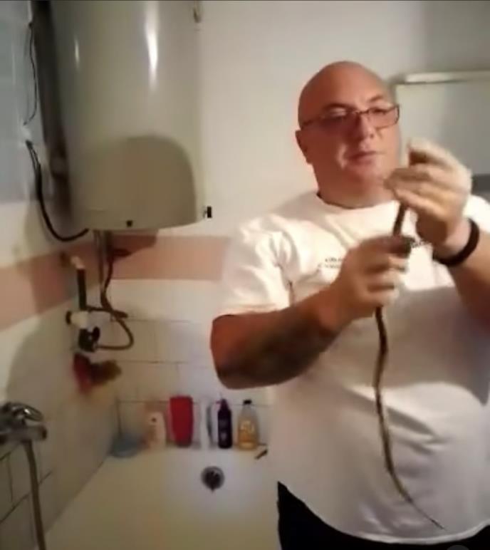 Vladica Stanković najpoznatiji hvatač zmija u Srbiji ponovo je imao neobičan zadatak, ovog puta susreo se sa zmijom koja je po svemu sudeći pokušala da se zavuče u bojler!