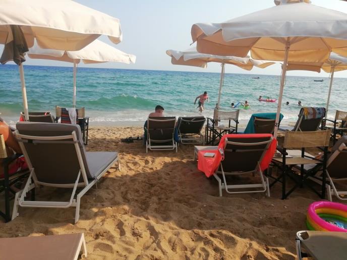- Peskovita plaža duž obale mora prekrivena je suncobranima, a u okruženju je više restorana hrane. Prava prilika da uživate u grčkoj musaki, grčkoj salati, girosu, suflakiju, ali i ribljim specijalitetima i sladoledu. More je toplo, u popodnevnim satima sa blagim talasima. Mesto kao stvoreno za porodični odmor. Dubina vode je postepena, što odgovara najmlađima - iskrena je A. B.