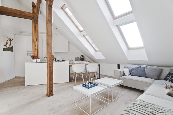 Dnevni boravak i krovni prozori koji odgovaraju željenom stilu
