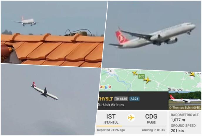 Prvi neuspešni pokušaj prinudnog sletanja aviona Istanbul-Pariz iznad Beograda Izvor: Instagram/192_rs
