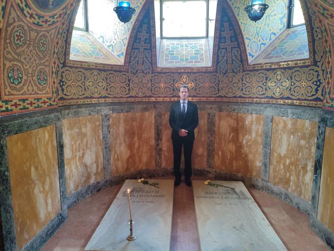 On je nakon polaganja cveća i paljenja sveća kazao da se oseća ponosno i ispunjeno, zbog povratka u Srbiju, gde mu se rodio sin Stefan, prvi nakon svog pradede Kralja Petra II, koji je rođen u Beogradu, čime je, kako je rekao, ispunio želju generacija Karađorđevića, a posebno želju njegovog dede, blaženopočivšeg Kralja Petra II.