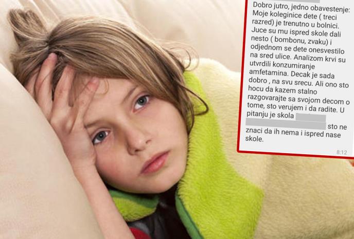 Dete, koje pohađa drugi osnovne, je bez svesti hitno prevezeno u UKC Kragujevac gde je analizama ustanovljeno prisustvo amfetamina u krvi. Sada je stabilno.