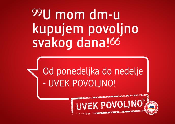 Dakle, sledeći put kada uđete u dm drogeriju i napunite svoju korpu, setite se koncepta „Uvek povoljno“, potražite crvene etikete i uživajte u omiljenim proizvodima po uvek povoljnim cenama.
