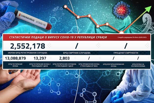 Istovremeno, na korona virus testirano je 13.297, a prošle nedelje je 7.437.