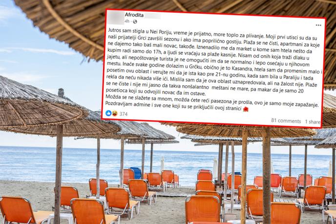 Međutim, turistkinja Afrodita objavila je u Fejsbuk grupi Grčka info koliko se jutros razočarala kada je stigla u jedno od omiljenih letovališta Srba.