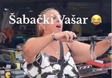 Nudila je i da se proba ovaj neobičan donji veš kako bi na licu mesta demonstrirala da će pokazati na nekakvoj aplikaciji da je muškarac baš tu na šabačkom vašaru.