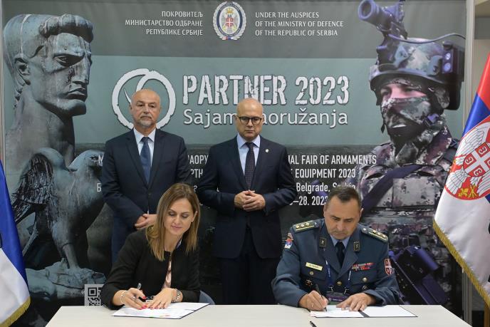 Potpisivanju ugovora prisustvovali su državni sekretar u Ministarstvu odbrane Nemanja Starović, pomoćnik ministra za materijalne resurse dr Nenad Miloradović, šefovi kabineta potpredsednika Vlade i ministra odbrane Žarko Mićin i brigadni general Goran Momčilović, predstavnici Ministarstva odbrane, Vojske Srbije, grupacije Odbrambena industrija Srbije i kooperantskih preduzeća. Ministar odbrane obišao je danas na Sajmu izložbene štandove organizacijskih celina Ministarstva odbrane i kompanija Odbrambene industrije Srbije.