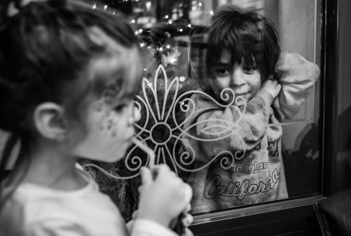 Na jednoj strani doterana devojčica, lice ukrašeno šljokicama, sa uživanjem pije sokić na rođendanu, a s druge strane devojčica zapuštenog izgleda i čežnjivog pogleda. Stoji ispred izloga restorana i gleda umilno i setno u svoju vršanjkinju, deli ih staklo... Dele ih sreća i tuga!