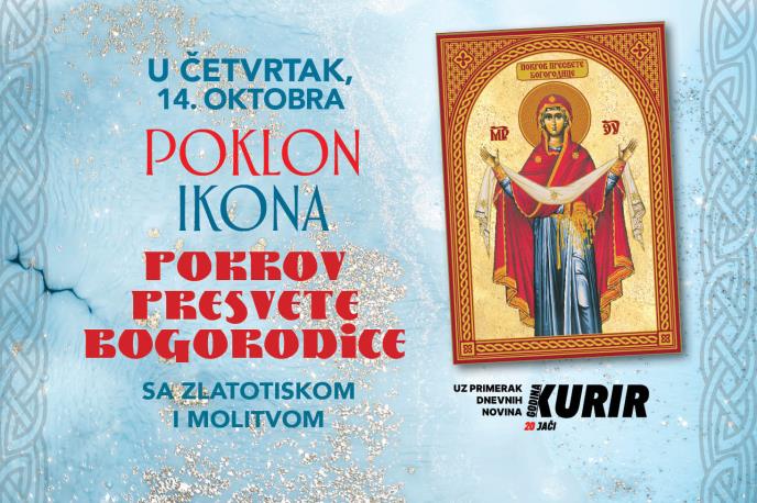 OBELEŽITE PRAZNIK UZ KURIR! U subotu, 14.oktobra poklanjamo vam ikonu POKROV PRESVETE BOGORODICE SA ZLATOTISKOM I MOLITVOM