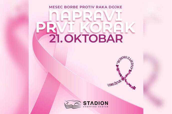 Udruženje žena obolelih i lečenih od raka dojke „Budimo Zajedno” i šoping centar Stadion obeležiće Međunarodni mesec borbe protiv raka dojke pod motom Napravi prvi korak, pregledaj se 21. oktobra od 16h do 20h na nivou 0.