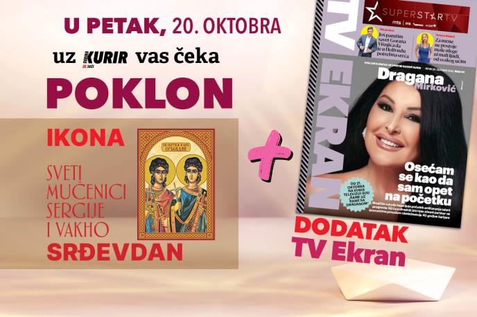 SVIM VERNICIMA KOJI SLAVE SRĐEVDAN KURIR U PETAK, 20.OKTOBRA POKLANJA IKONU SA ZLATOTISKOM I MOLITVOM plus dodatak TV EKRAN