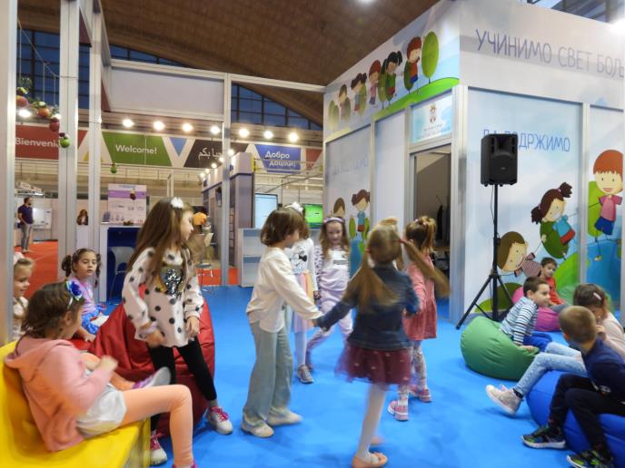 Predškolci i njihovi vaspitači iz predškolskih ustanova „Dečja radost” iz Pančeva, „Radost” iz Novih Banovaca i „Naša radost” iz Sopota predstavili su na štandu Ministarstva prosvete svoje aktivnosti, načine na koje istražuju kroz igru, stiču nova iskustva, grade odnose sa vršnjacima i odraslima i razvijaju svoje potencijale i talente. Mališani iz predškolske ustanove iz Pančeva zajedno sa svojim vaspitačima realizovali su radionice u okviru projekata „Naša prva bajka“ i „Zajedno u svetu“, dok su deca iz vrtića iz Novih Banovaca prikazali kako vide roditelje u vrtiću.