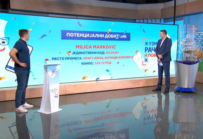 U izvlačenju dobitnika dva stana u Beogradu pomagao je sportista Mihail Dudaš, a u nagradnoj igri "Uzmi račun i pobedi" učestvuje 998.928 građana koji su preko aplikacije poslali račune.