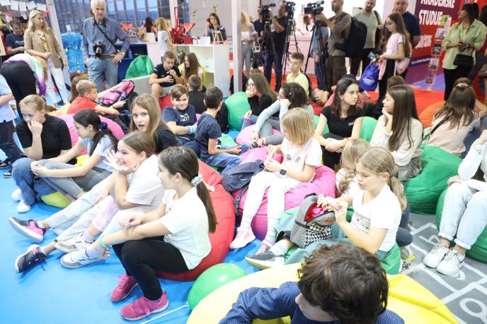 Na štandu Ministarstva prosvete predstavili su se učenici osnovnih škola u kojima se nastava ostvaruje na jezicima nacionalnih manjina ili realizuje izborni program maternji jezik/govor sa elementima nacionalne kulture.
