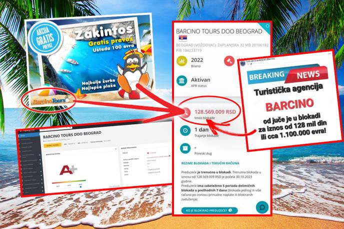 Poznata turistička agencija Barcino tours je u blokadi i to za 128.569.009 dinara, odnosno nešto oko 1.100.000 evra!