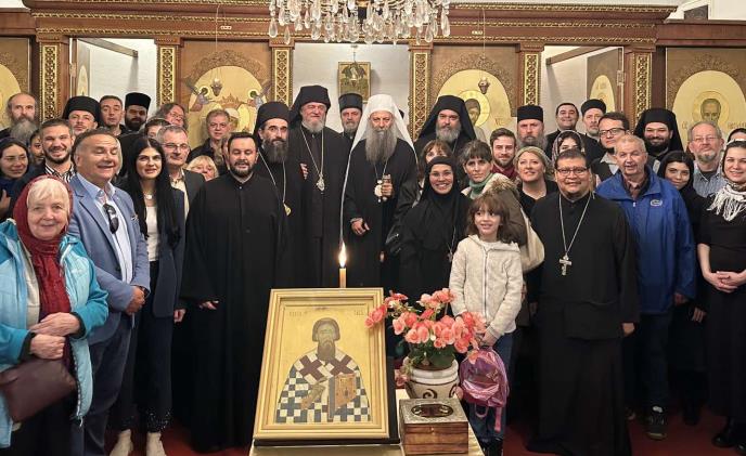 Povodom dolaska prvojerarha Srpske pravoslavne crkve služena je doksologija uz učešće episkopa buenosajreskog i južno-centralnoameričkog Kirila, niškog Arsenija, dalmatinskog Nikodima i remezijanskog Stefana, sveštenstva, monaštva i blagočestivog vernog naroda. Bogosluženju je prisustvovao i dr Vladimir Roganović, direktor Uprave za saradnju sa crkvama i verskim zajednicama.