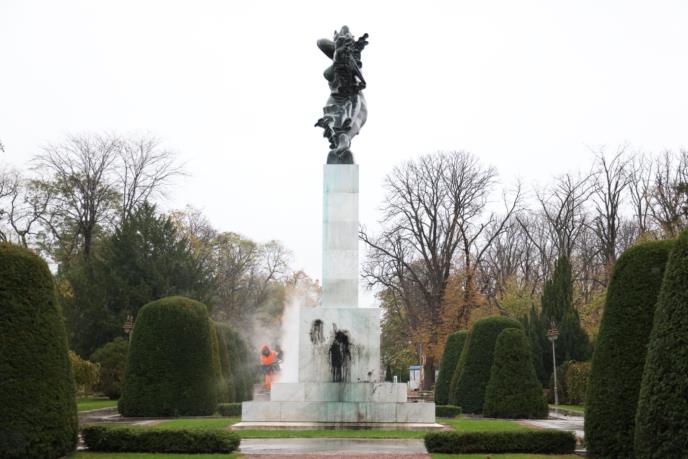 Nepoznati počinioci oskrnavili su sinoć crnom bojom Spomenik zahvalnosti Francuskoj na Kalemegdanu.