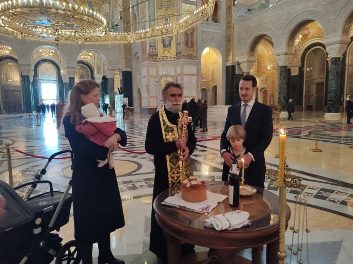 Prinčevska porodica je u prepodnevnim satima odnela kolač i koljivo u Hram Svetog Save na Vračaru. Čin blagosiljanja slavskog kolača i koljiva služio je protojerej-stavrofor Radivoje Panić.