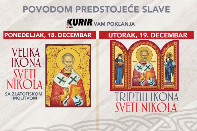 Tim povodom, Kurir vam u ponedeljak, 18. decembra, poklanja VELIKU IKONU, a u utorak, 19. decembra, TRIPTIH u zlatotisku!