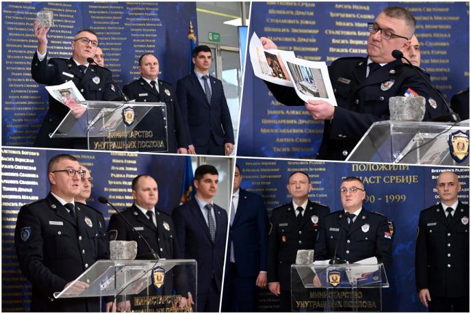- Juče oko 18 sati došlo je do nenajavljenog okupljanja građana. Bilo ih je oko 2.400. Okupljena lica su satima policajce gađala palicama. Tri sata su trpeli nasilje... Pogledajte..., kazao je jutros načelnik Uprave policije Ivica Ivković na konferenciji uživo u Palati Srbije pokazujući fotografije kamenica, motki, palica s kojima su učesnici nasilnog skupa krenuli sinoć pred Skupštinu grada, u centru Beograda.