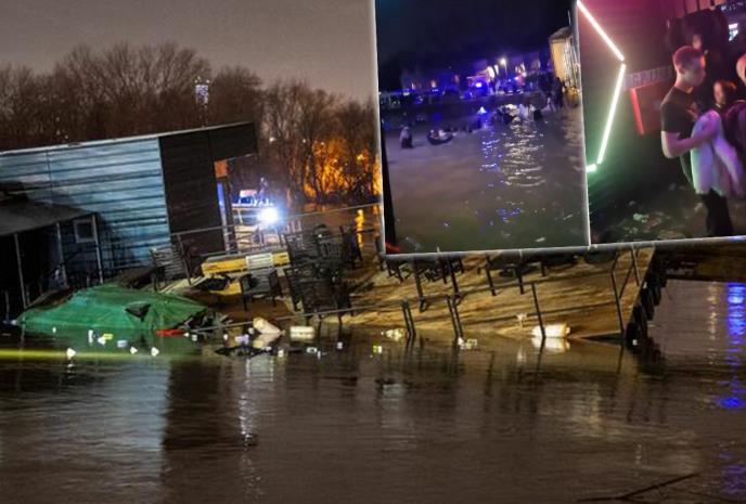 Na snimcima koji su se pojavili na društvenim mrežama vidi se desetine mladih koji su se našli u ledenoj vodi, dok je splav tonuo.