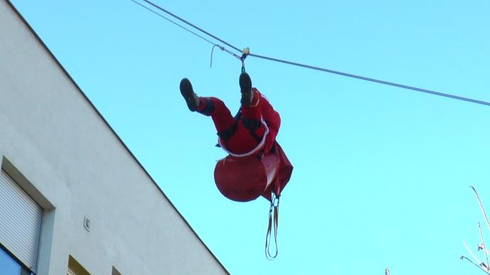 Na nesvakidašnji način, kao i ranijih godina, oni su se spuštali sa krova bolnice i poklone delili kroz prozor. Gorska služba spasavanja ovu akciju u Nišu, spovodi tri godine. Mališanima u Nišu podeljeno je oko 100 paketića.