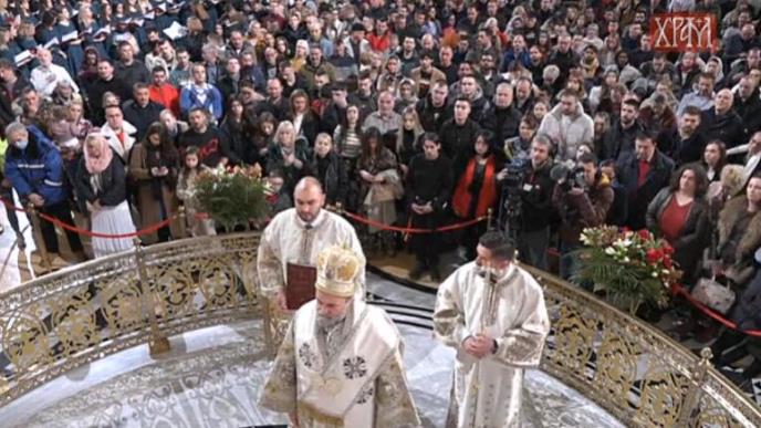 Večeras je u ponoć počela sveta Arhijerejska božićna liturgija u Hramu Svetog Save. Prema jevanđelju, Isus Hristos je rođen tačno u ponoć, kada se najsjajnija zvezda koja se kretala od istoka prema zapadu zaustavila iznad pećine kraj Vitlejema.