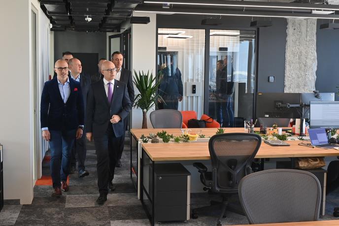 Ministar Vučević, gradonačelnik Đurić i Ostojić obišli su prizemlje i 13. sprat zgrade kako bi sagledali na koji način je uređen prostor od 6.500 kvadratnih metara i kako je vraćen stari sjaj nekadašnjem Radničkom univerzitetu, jednom od čuvenih simbola Novog Sada.