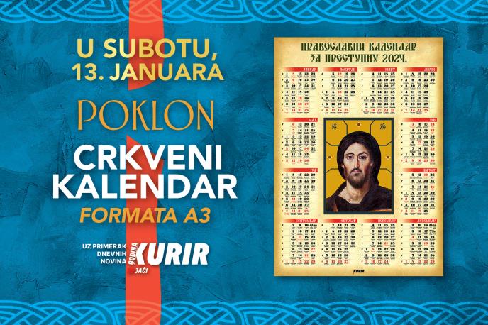Dnevne novine Kurir u subotu, 13. januara, poklanjaju poster sa crkvenim kalendarom za prestupnu 2024. godinu.