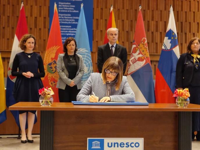 U sedištu UNESKO-a u Parizu potpredsednica Vlade Republike Srbije i ministarka kulture Maja Gojković potpisala je sa ministrima kulture i predstavnicima zemalja bivših jugoslovenskih republika Sporazum o finansiranju ponovnog uspostavljanja zajedničke stalne postavke u Državnom muzeju Aušvic-Birkenau u Republici Poljskoj, kao mestu sećanja na žrtve u koncetracionom logoru Aušvic-Birkenau, u prisustvu direktorke UNESKA Odri Azule.