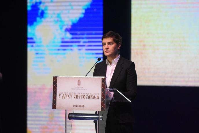 Premijerka Srbije Ana Brnabić je večeras na Svetosavskoj akademiji u Beogradu izjavila da, zahvaljujući radu Svetog Save, "pominjanje obrazovanja u Srbiji ne ide bez njega", da ga zato škole slave i da je cilj da "Savine vrednosti budu okosnica sistema vaspitnog rada".