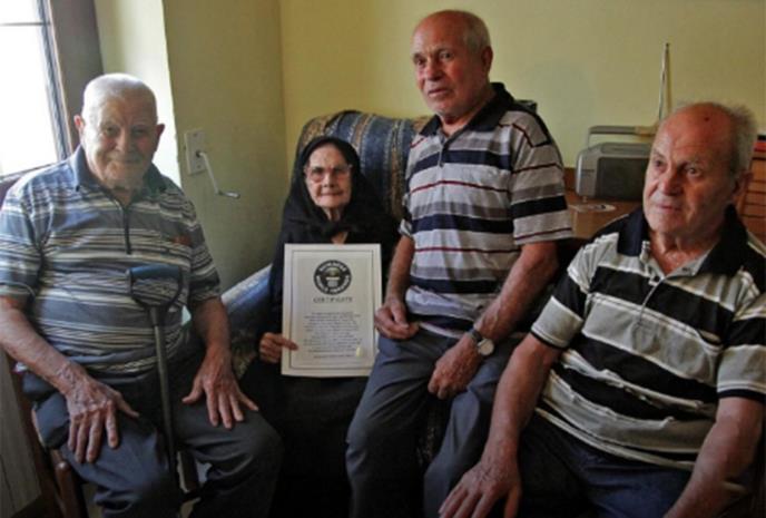 Porodica Melis je najstarija porodica na svetu koja drži rekord u dugovečnosti. Godine 2012. oborila je rekord kao porodica sa najvećim kombinovanim uzrastom. Devetoro braće i sestara zajedno imaju 861 godinu, a najstariji član 109 godina. Den Bjutner, istraživač, novinar i producent koji godinama proučava navike ljudi u plavim zonama, otkrio je šta najdugovečnija porodica jede svaki dan.