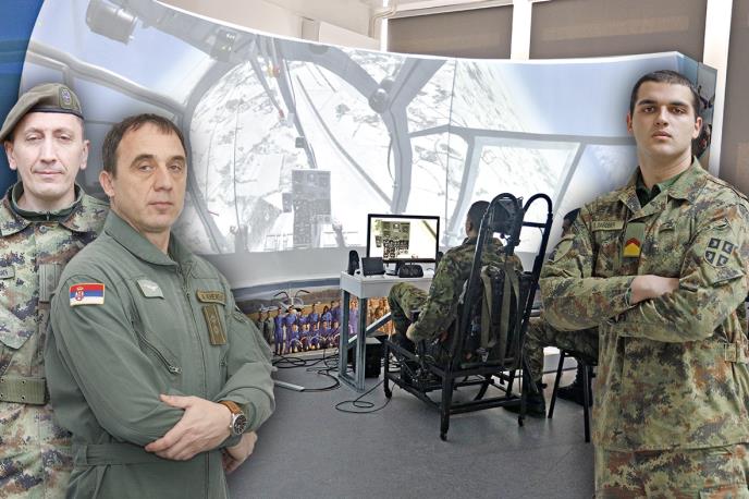 - Upravo ovaj kabinet kadetima služi da teorijsko znanje na neki način praktično provežbaju, na najpogodniji način. Način na koji je organizovana ova učionica predstavlja taj koncept digitalne obuke i selekcije pilota. Ovde imamo polusferno projekciono platno, gde je projektovano 150 stepeni puta 60 stepeni vidnog polja, koji se koristi za obuku na helikopterima. Sledeći je simulator u virtuelnoj realnosti, koji je izuzetno pogodan za uvežbavanje određenih delova obuke. I poslednji simulator je za obuku na avionima, to je vidno polje od 60 puta 270 stepeni, gde možemo da vidimo i krila aviona koja se projektuju pored ove kabine, i imamo tač-skrin ekran, na kojem su projektovani najnoviji digitalni instrumenti, tako da, praktično, kao u pravom avionu, vi možete potpuno da radite sve operacije i radnje s tim instrumentima - naveo je doc. dr Aleksandar Knežević, nastavnik letenja na Katedri vojnog vazduhoplovstva, i dodao da su za kabinet nabavljene i naočare za mešovitu realnost, koje će biti primenjene na novom simulatoru za avion.