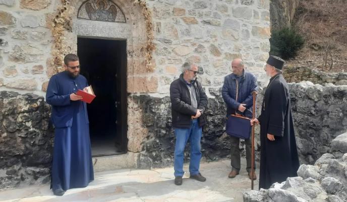 Po dolasku u manastir Kumanicu episkop Atanasije je u hramu služio pomen blaženopočivšem episkopu Atanasiju Jevtiću, povodom godišnjice njegovog upokojenja. Nakon toga svi zajedno su razgledali hram i razmotrili sve mogućnosti za planirani projekat.