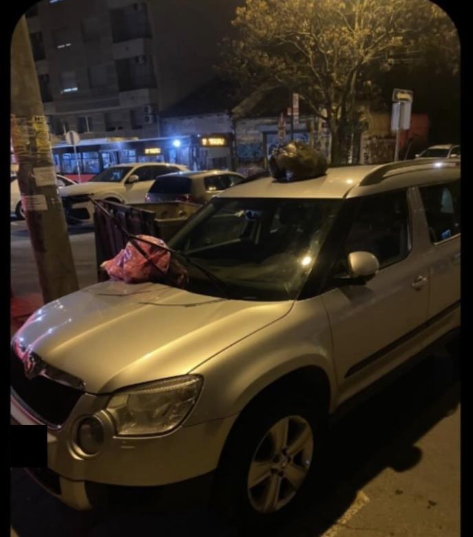 Kako se može videti na fotografiji prolaznici su podigli brisače ovog vozila, a "častili" su ga i sa nekoliko kesa sa smećem.