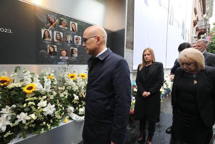 Predsednik Vlade Republike Srbije Miloš Vučević upisao se danas u knjigu žalosti povodom obeležavanja prve godišnjice tragedije u Osnovnoj školi „Vladislav Ribnikar“, gde je ubijeno devetoro dece i radnik obezbeđenja.