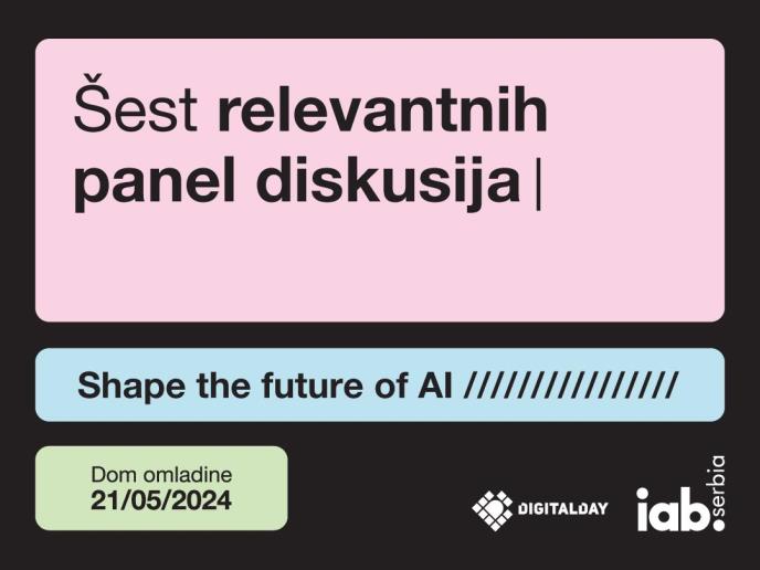 Na konferenciji Digital Day koja će se 21. maja održati u Domu omladine Beograda, pod sloganom Shape the Future of AI okupiće se istaknuti profesionalci u oblasti digitala koji će u okviru panela diskutovati o najaktuelnijim temama ove industrije.
