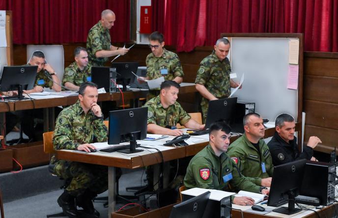 Pripadnici Centra za obuku putem simulacija su obezbedili uslove za izvođenje vežbe i učestvovali u pripremi i realizaciji scenarija koji oficirima pruža mogućnost za razvoj kritičkog mišljenja i sticanje iskustva u predlaganju upotrebe jedinica.