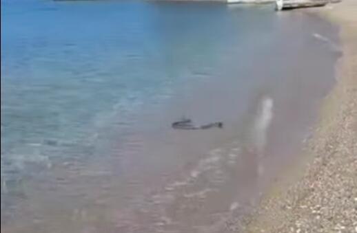 OKUPALA SE U MORU PA IZAŠLA NA PLAŽU: Srbi na odmoru u Grčkoj snimili ogromnu zmiju, ČUJU SE VRISCI (VIDEO)