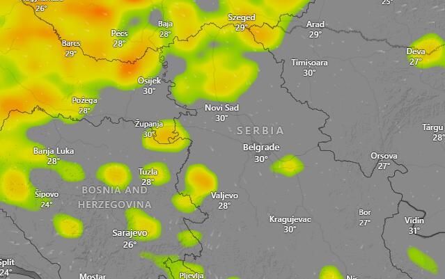 Zadržava se samo nad severnim delom Vojvodine. U ostatku Srbije ostaje vedro i tropski toplo.