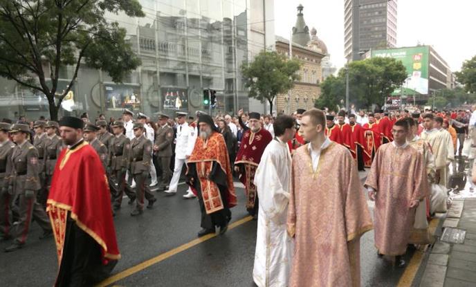 - Mi danas imamo liturgiju, koja upravo je sada u toku, a posle liturgije će biti slavski ručak. U popodnevnim časovima će biti krstonosni hod ili litija. Litija kreće u 19 časova, ovde iz ulice Kneza Miloša, preko ulice Kralja Milana. Na slavi će biti jedno kraće zadržavanje gde će se pročitati jevanđelje i moleban, odnosno molitva za sve Beograđane i za sav srpski narod. Ono što će odlikovati ovu litiju u različitom odnosu na druge litije to je ovaj broj ruskih episkopa koji je došao kod nas. Završiće se litija ispred samog hrama, ispred hrama patrijarh će održati kratko akatist i daće pouku srpskom narodu, onu koju pretpostavljamo da će biti kraće forme. Time se završava litija ove godine i ja pozivam sve Beograđane da dođu u što većem broju da budu na samoj litiji.