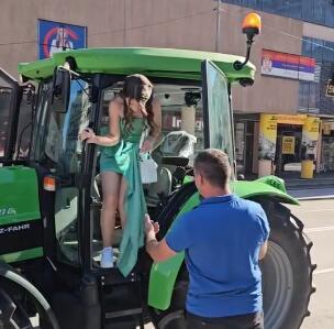 Mala maturantkinja Tijana Marković iz Užica izazvala je juče oduševljenje kada je na proslavu svoje male mature stigla traktorom.