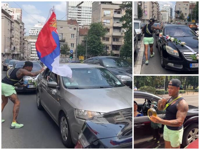 Amerikanac Džibri Bel, koji već neko vreme boravi u Srbiji i oduševljen je srpskom kulturom i narodom, sreo je u Beogradu svadbenu povorku vozila i toliko se raspametio ovim srpskim običajem da je prilazio ljudima, zdravio se sa njima, čestitao, pio rakiju...