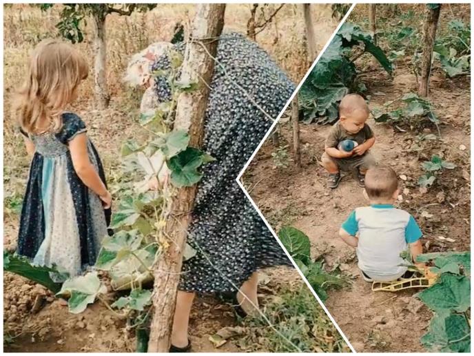 Na snimku koji je postavila vidi se baka okružena praunučićima kako radi po bašti dok joj oni pomažu.