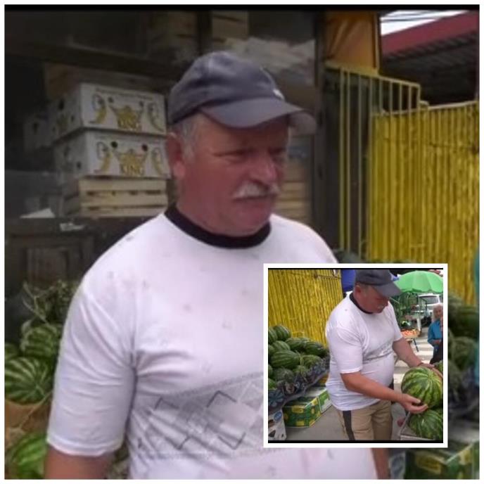 - Evo ovako, ovo je ženska lubenica koja ima udubljenje i to je slađa lubenica. A muška lubenica ona je ispupčana i to je jedina caka u poljoprivredi."