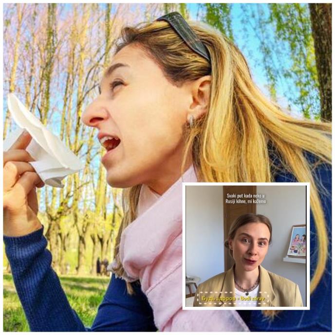 - Primetila sam jednu stvar koju u Rusiji uvek rade, a u Srbiji mislim ne. Ćao svima, ja sam Aljona Ruskinja sam i učim srpski jezik. Svaki put kada neko u Rusiji kine, mi kažemo: "Budi zdrav". Tako kažemo porodici, prijateljima, kolegama i tako dalje. Ali i na ulici se može desiti i mi isto kažemo "Budi zdrav" - navela je Aljona u jednom od svojih videa na Tiktoku.