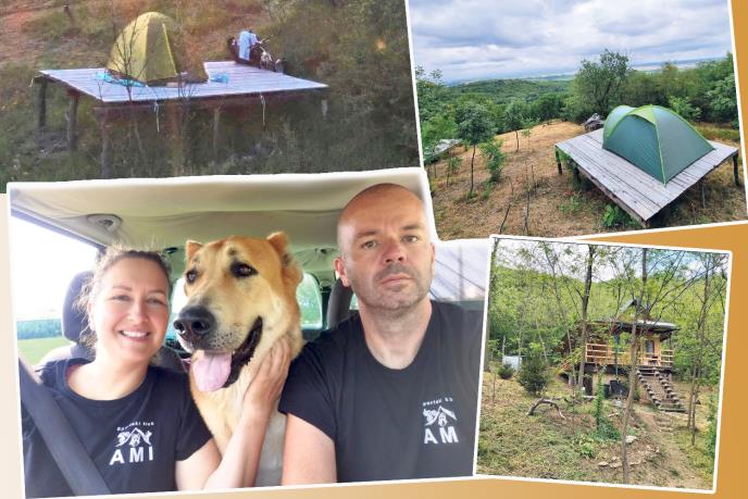 Aleksandar, njegova supruga Gabrijela (37) i njihov pas Ami žive u drvenoj kućici od 30 kvadrata koju su napravili pre pet godina, a plac im je na južnoj padini Vršačkih planina. Njih dvoje su rešili da za prave i istinske ljubitelje prirode naprave i kamp na Vršačkom bregu, koji se nalazi na 270 metara nadmorske visine i sa kojeg pogled puca na Karpate i Dunav.