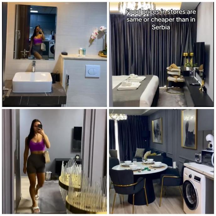 - Pre tri meseca preselila sam se u Dubai da radim kao personalni trener i evo našeg stana. Stan je zapravo jedina skupa stavka u Dubaiju. Gorivo je recimo dosta jeftinije, 40 litara košta 3.000 dinara - navela je ona.